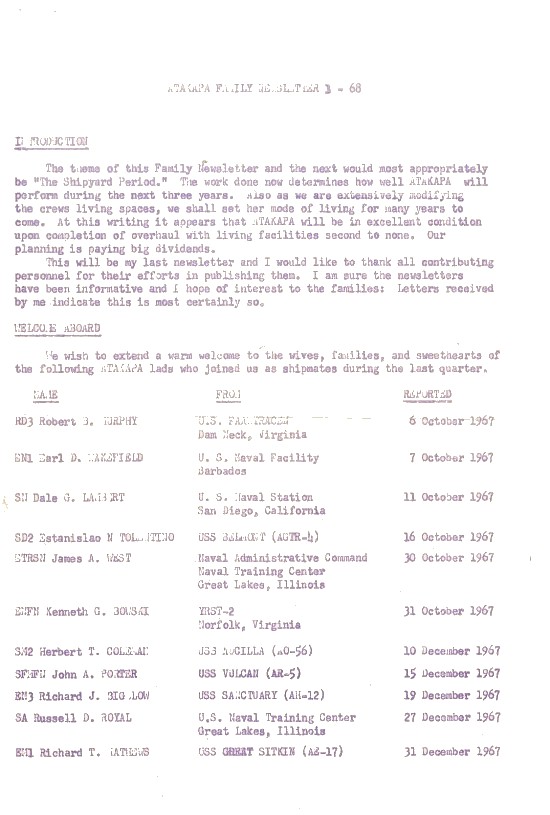Jim Walters sent in a copy of a 1968 Family Newsletter
