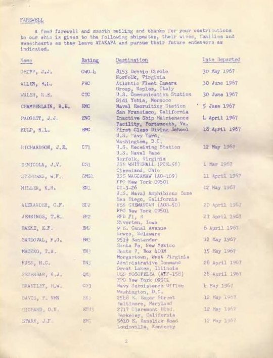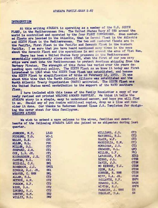 This was sent to all the families before the 1967 cruise, Notice it didn't say anything about spying on the Russians. I hope you enjoy it.